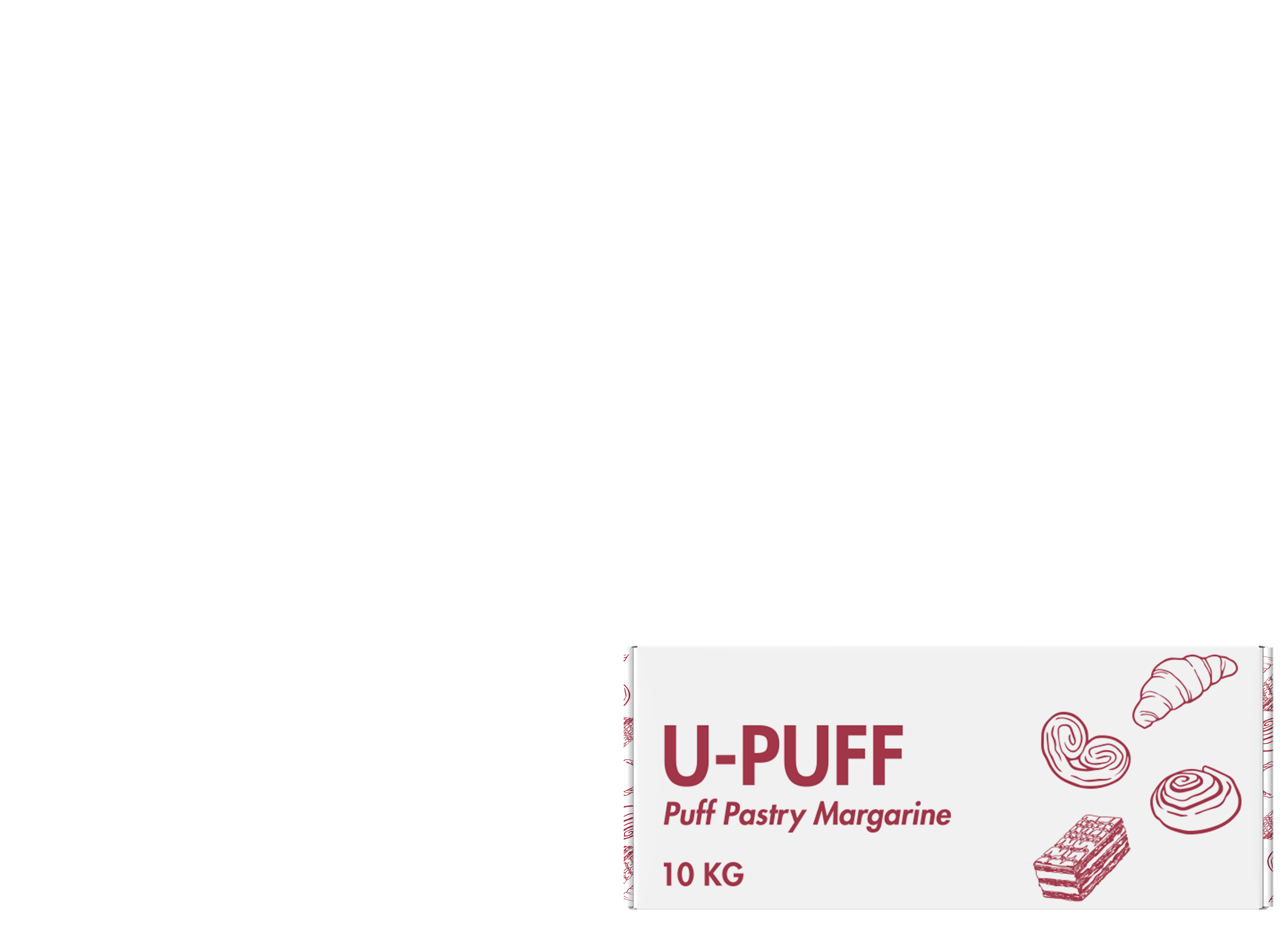 U-Puff is a premium line of specialty Margarines developed specifically for laminated yeasted and non-yeasted dough applications, ensuring optimal plasticity, workability, and superior lift during baking and outstanding layering of finished baked items. Its rich, buttery flavor and enticing aroma enhance the appeal of our customer’s baked products.